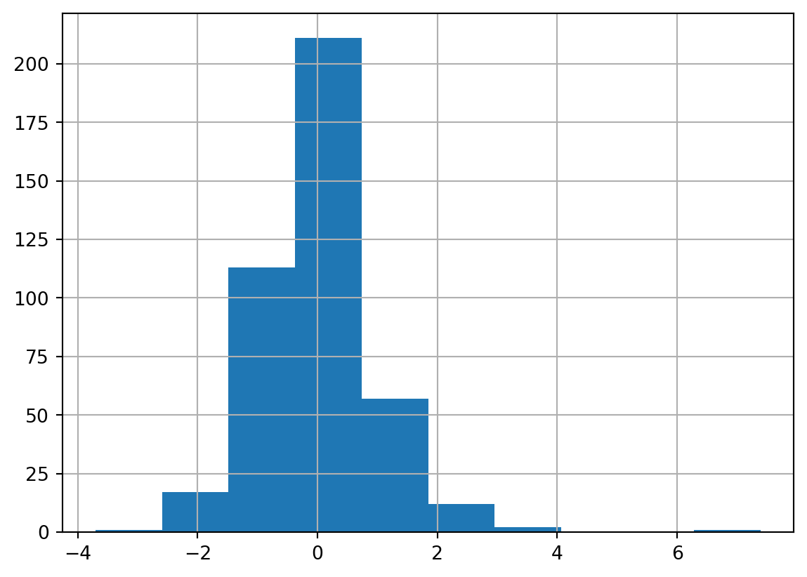 One of the first checks for Normality is to create a histogram. If the residuals adhere to a Normal distribution, we should observe a symmetric bell-shaped distribution.