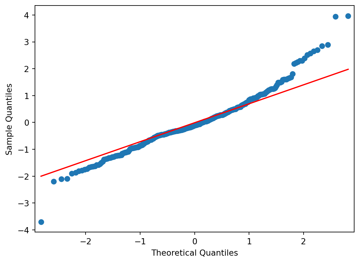 From above, it appears that the distribution is slightly skewed, and there is one noticeable outlier. A second graphical diagnostic plot that we make is a QQ-plot.