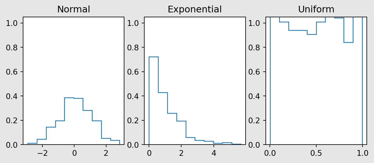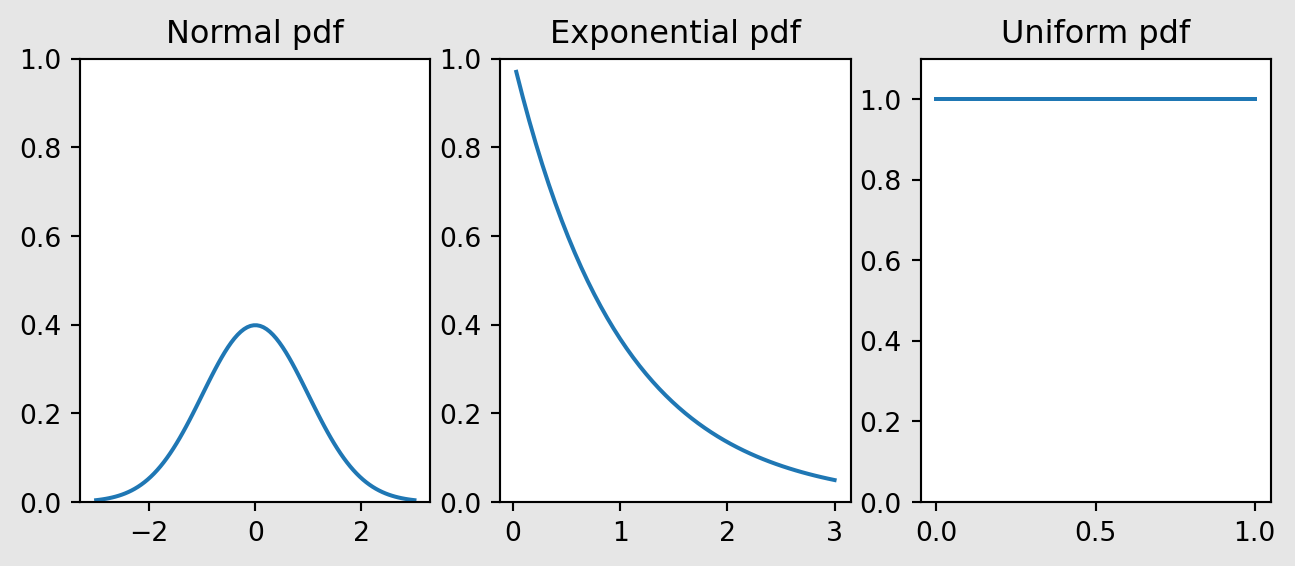 pdfs = ['Normal', 'Exponential', 'Uniform']